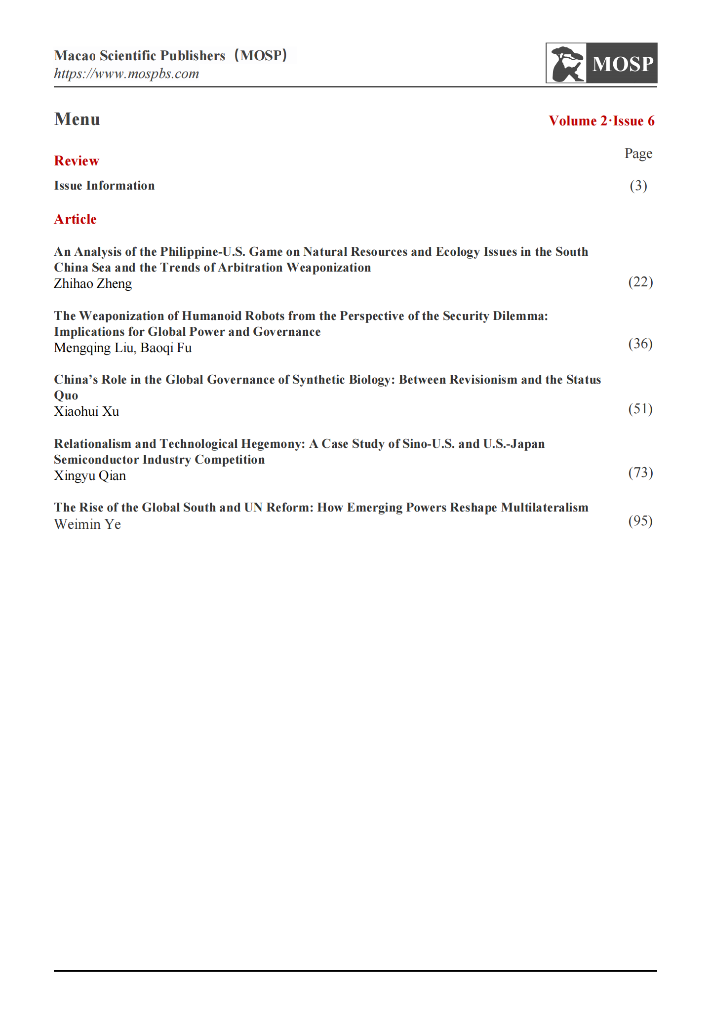 Macao Scientific Publishers(MOSP)